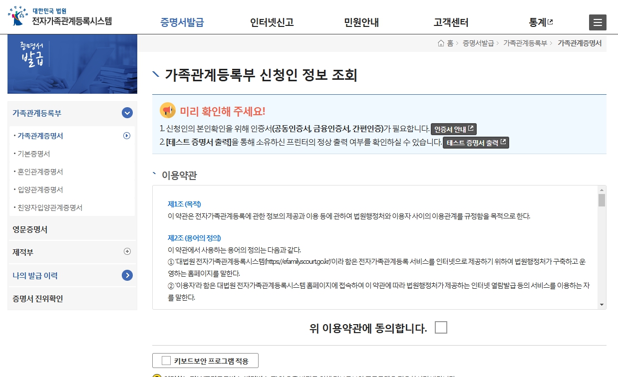 가족관계증명서 인터넷 발급 방법